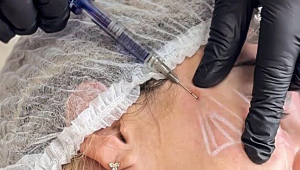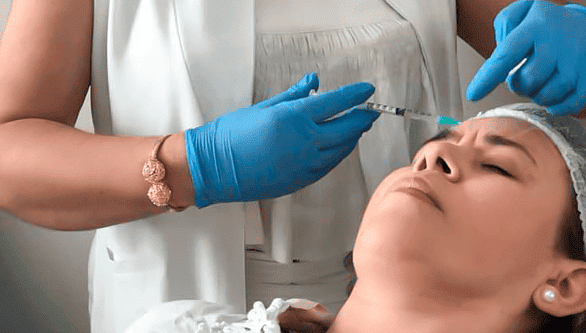 Aplicação da toxina botulínica nas linhas de expressão (testa, entre as sobrancelhas e pés de galinha). Normalmente é feita manutenção com intervalo de 4 a 6 meses.
