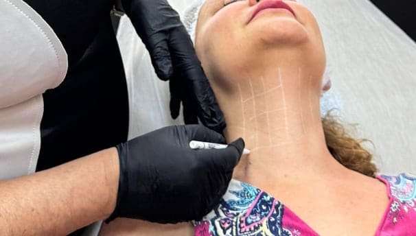 Protocolo Nefertite: aplicação da toxina botulínica na região do “buldogue” e do “platisma” (músculo do pescoço).